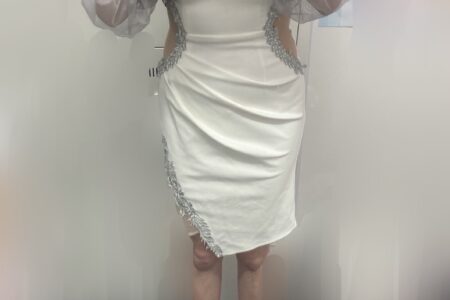 こんばんは~ぴなです!出勤しました(*Ü*) 今日はドレスday🤍珍し目なものを着てみたので、鏡越しに📸😆 袖も腰もシースルーだよ🎶 ・・・
